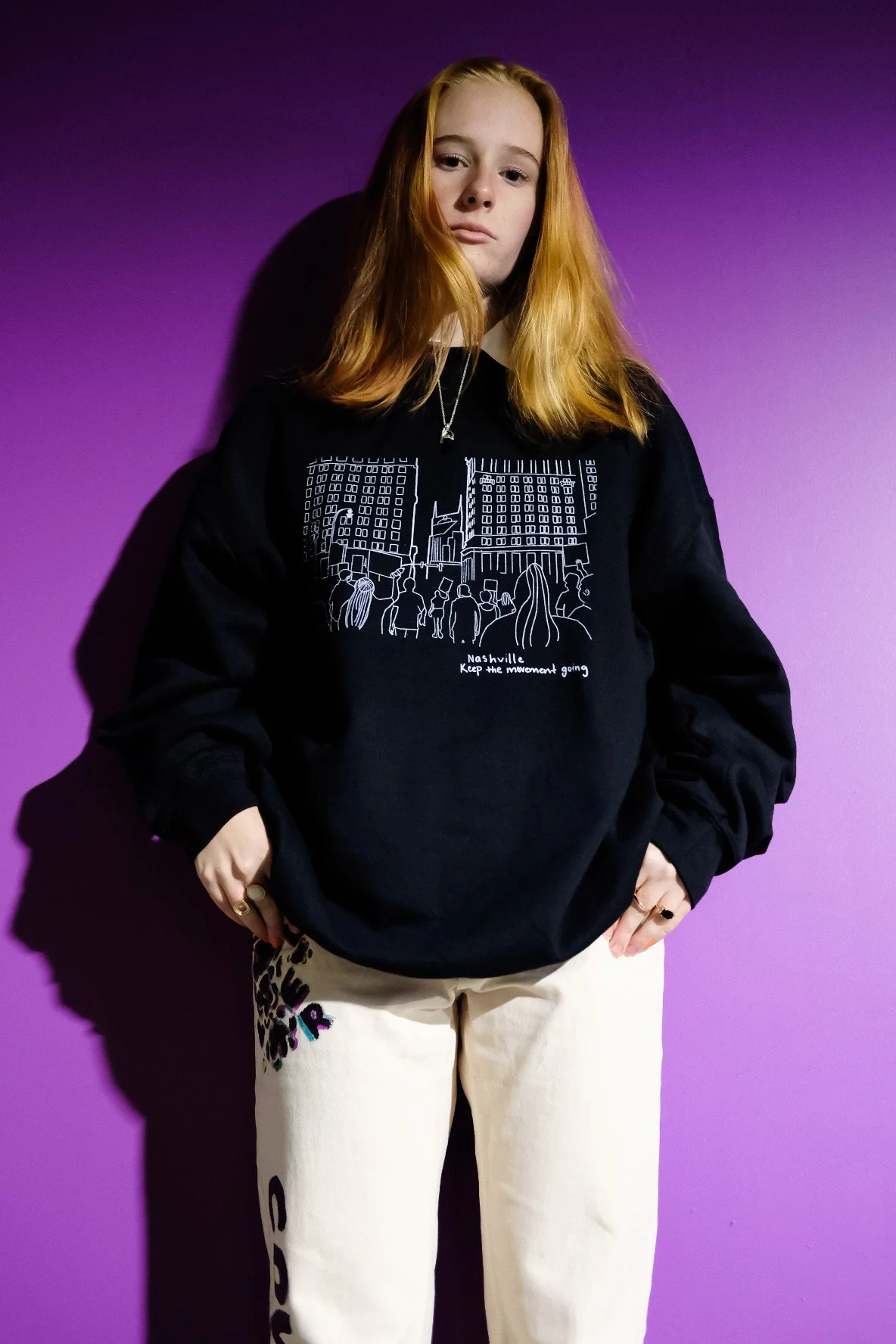We collaborated with a talented local photographer based in Nashville, TN, @abb3y (Instagram), who captured the design’s imagery during one of the largest BLM gatherings in the heart of Nashville. This piece represents solidarity, resilience, and the drive to keep the movement alive.